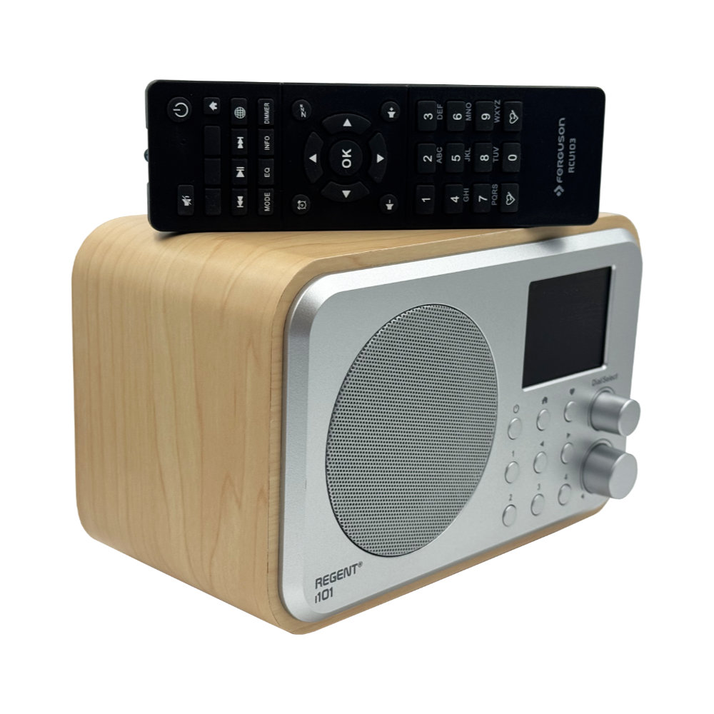 Poznaj Ferguson Regent i101 – stylowy odbiornik radiowy, który na nowo definiuje sposób słuchania muzyki i podcastów. Urządzenie zamknięte w eleganckiej obudowie z wykończeniem z naturalnego drewna łączy klasyczny design z najnowocześniejszą technologią. To hybrydowe rozwiązanie 5-w-1 pozwala cieszyć się radiem internetowym, cyfrowym DAB+, analogowym FM oraz bezprzewodowym streamingiem przez Bluetooth 5.3 i UPnP. Dzięki wydajnemu akumulatorowi i uniwersalnemu ładowaniu przez USB-C, Regent i101 zapewnia pełną mobilność, towarzysząc Ci w salonie, ogrodzie czy podczas wakacyjnych wypraw.